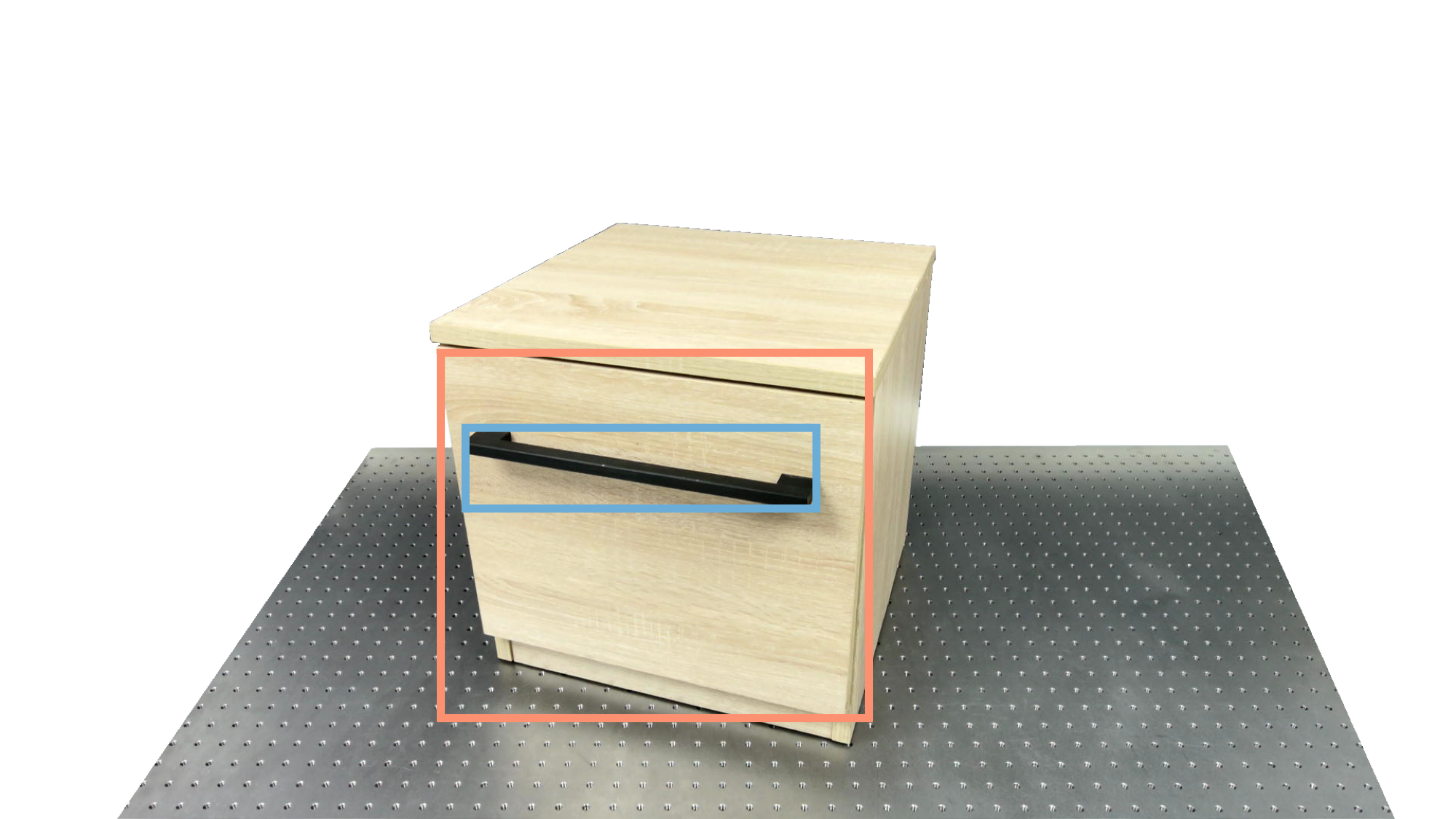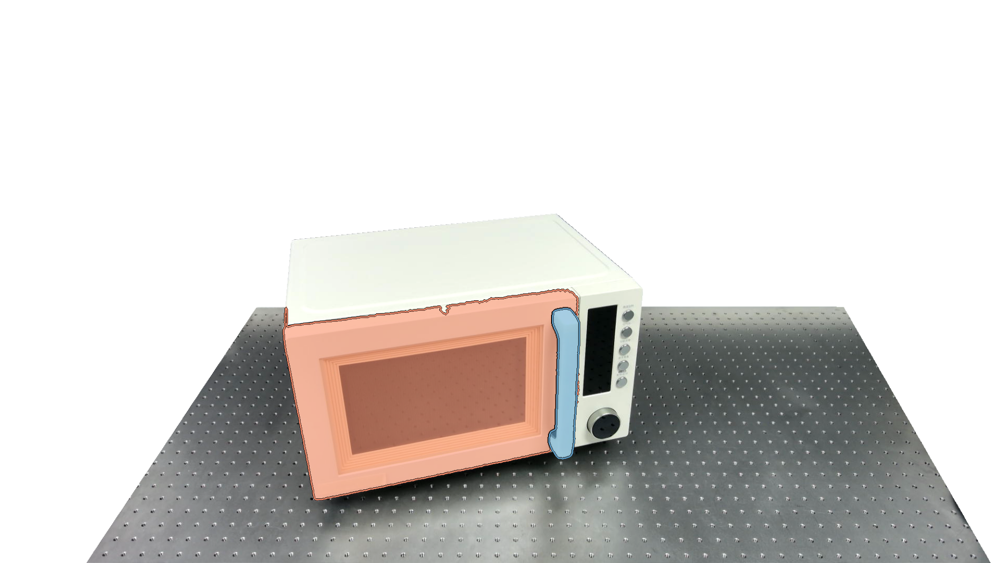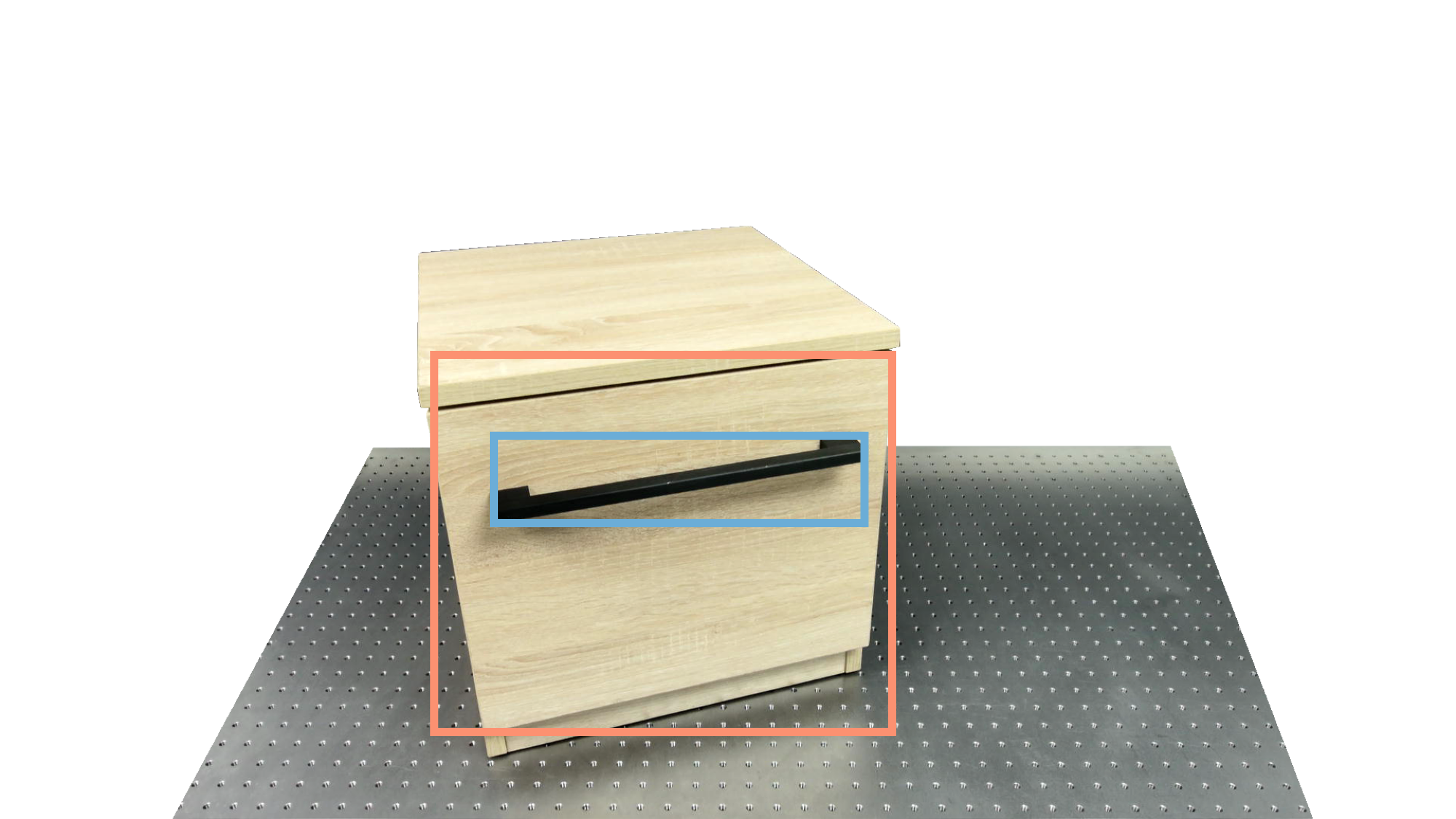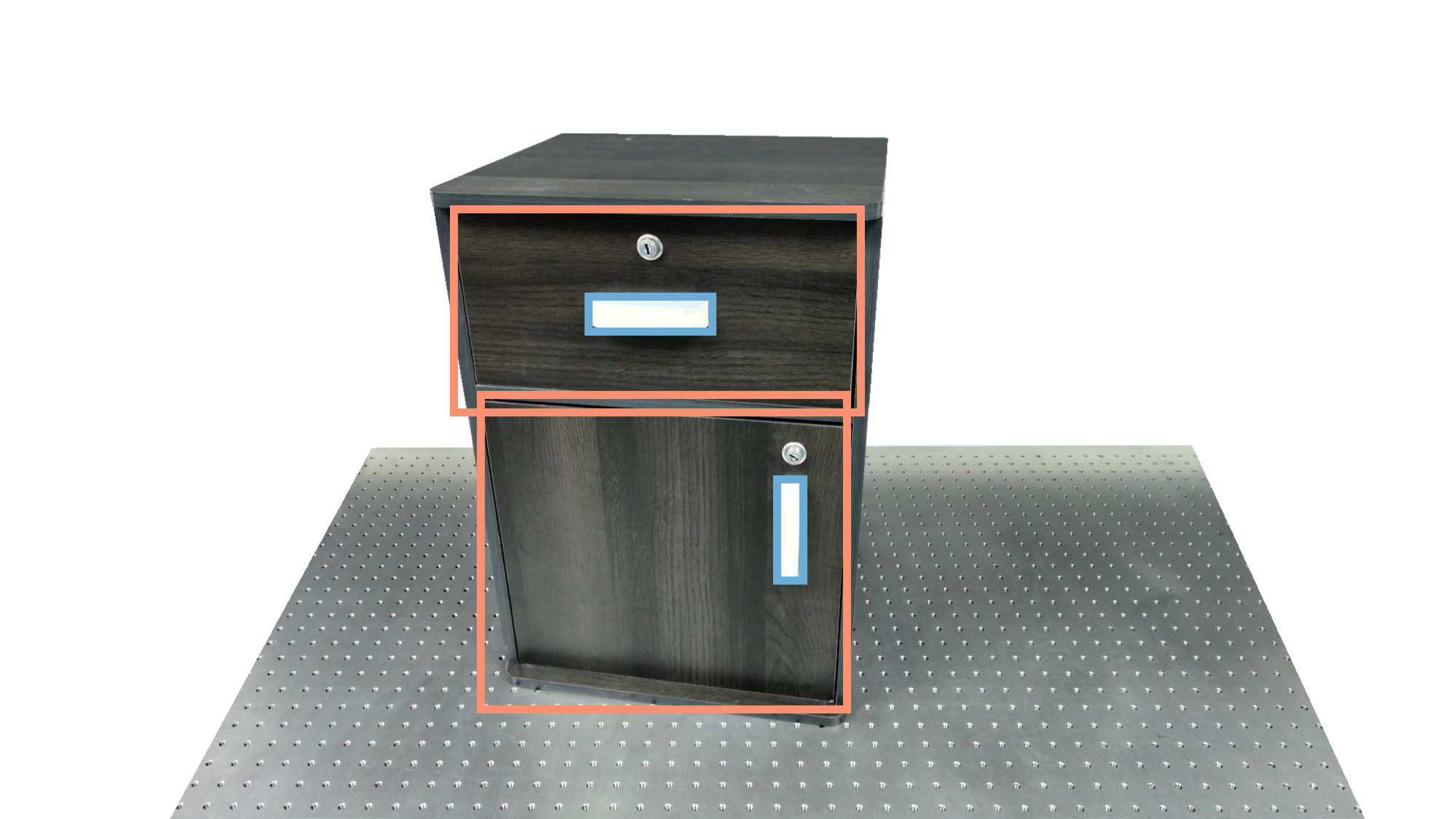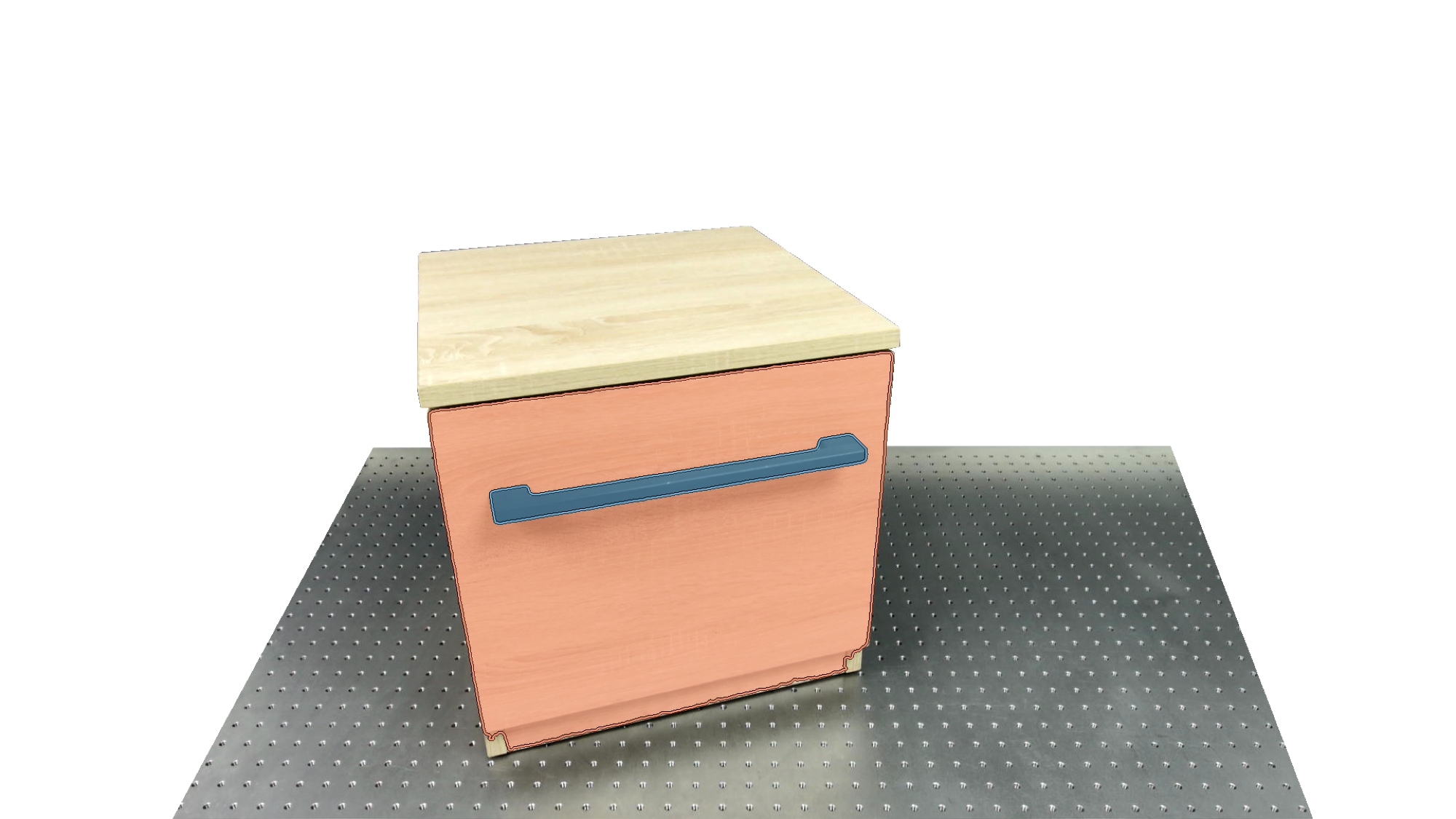 To identify holdable and movable regions, we first train a transformer-based detector that leverages DinoV3 visual features. The detector achieves a notably high mAP of 0.86 on the test set and generalizes seamlessly to real-world images. The model architecture and checkpoints are released with our code. The detection results are then used to prompt SAM2 for segmentation. In the following examples, blue indicates "holdable" parts, while orange indicates "movable" parts.