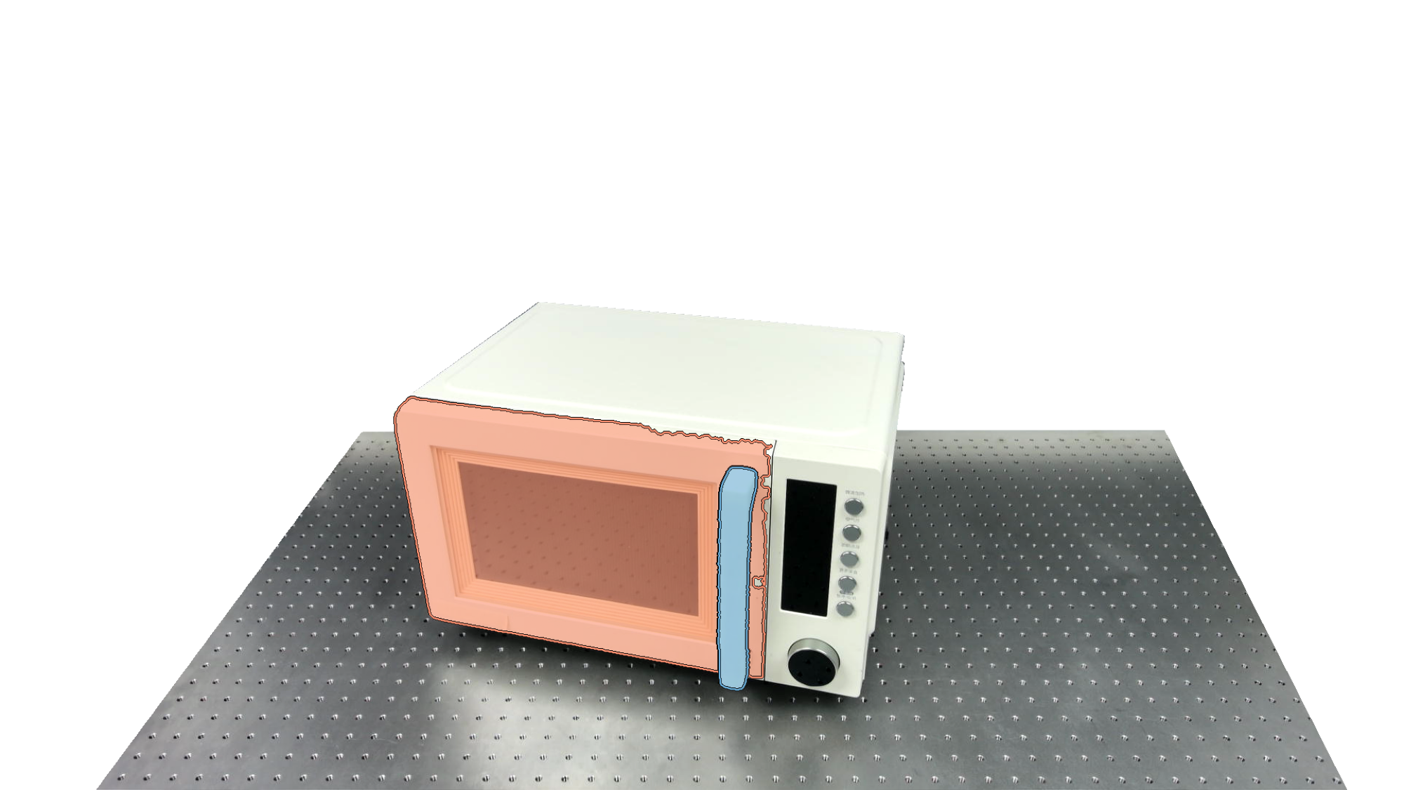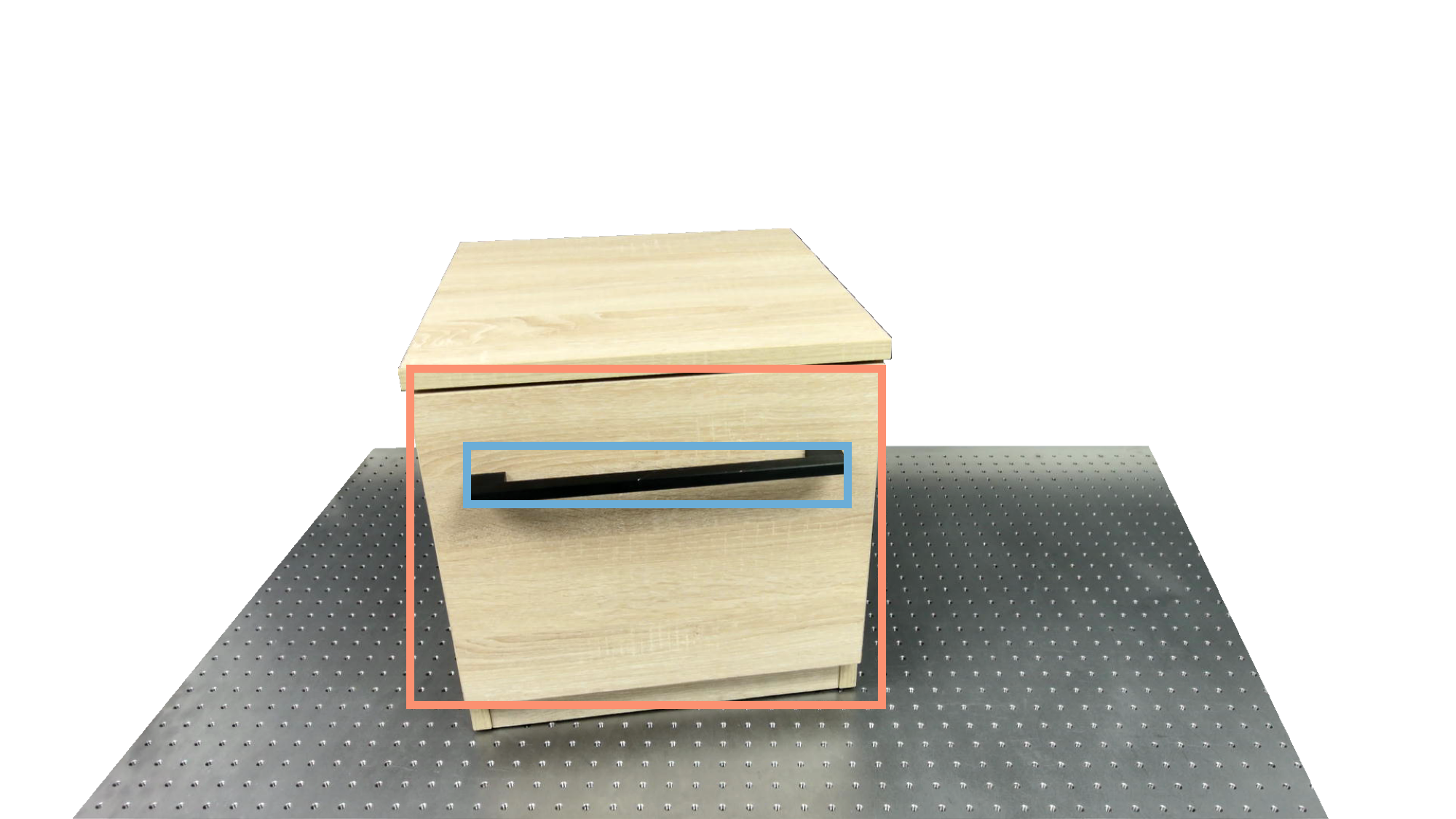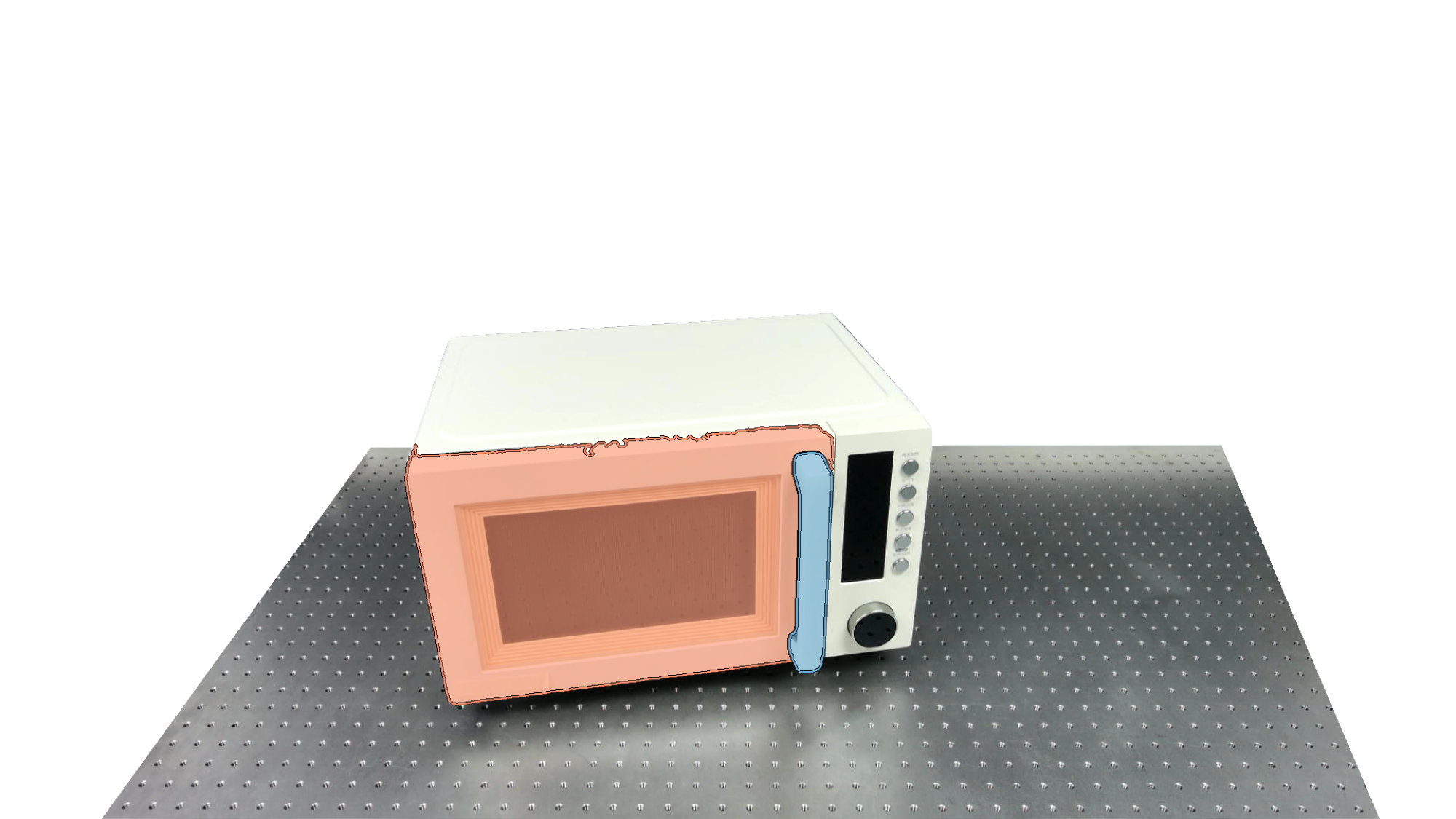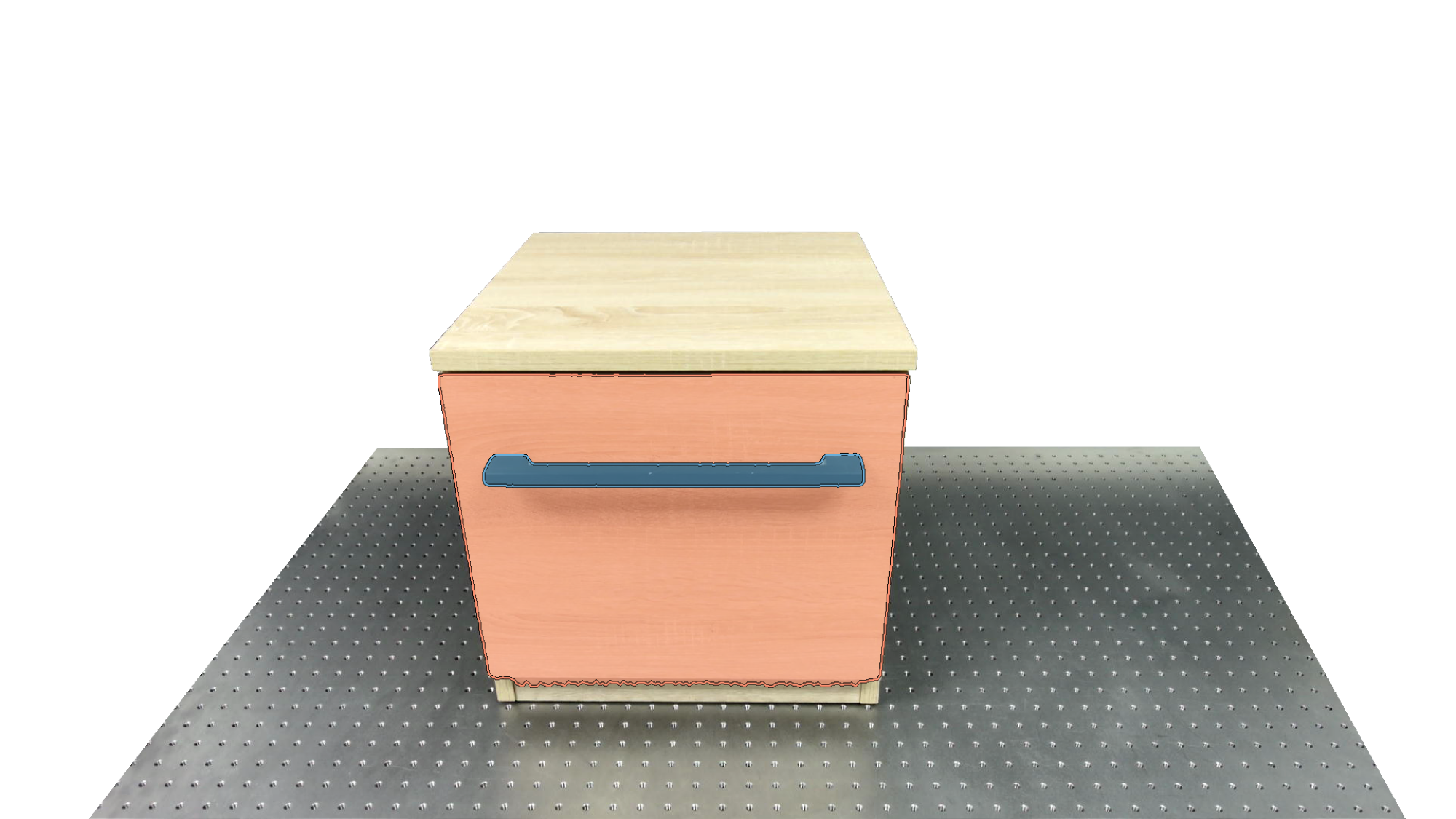 To identify holdable and movable regions, we first train a transformer-based detector that leverages DinoV3 visual features. The detector achieves a notably high mAP of 0.86 on the test set and generalizes seamlessly to real-world images. The model architecture and checkpoints are released with our code. The detection results are then used to prompt SAM2 for segmentation. In the following examples, blue indicates "holdable" parts, while orange indicates "movable" parts.