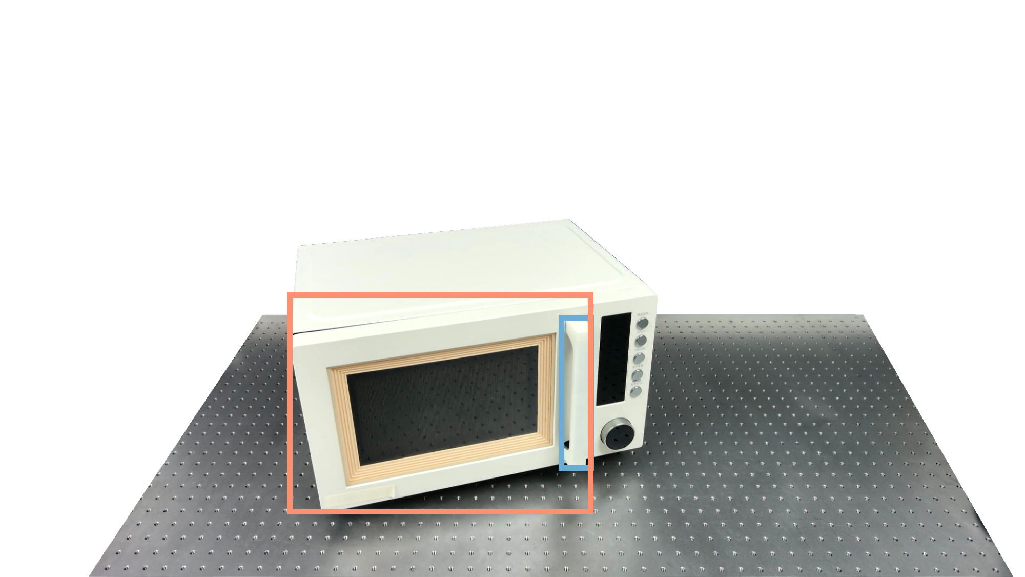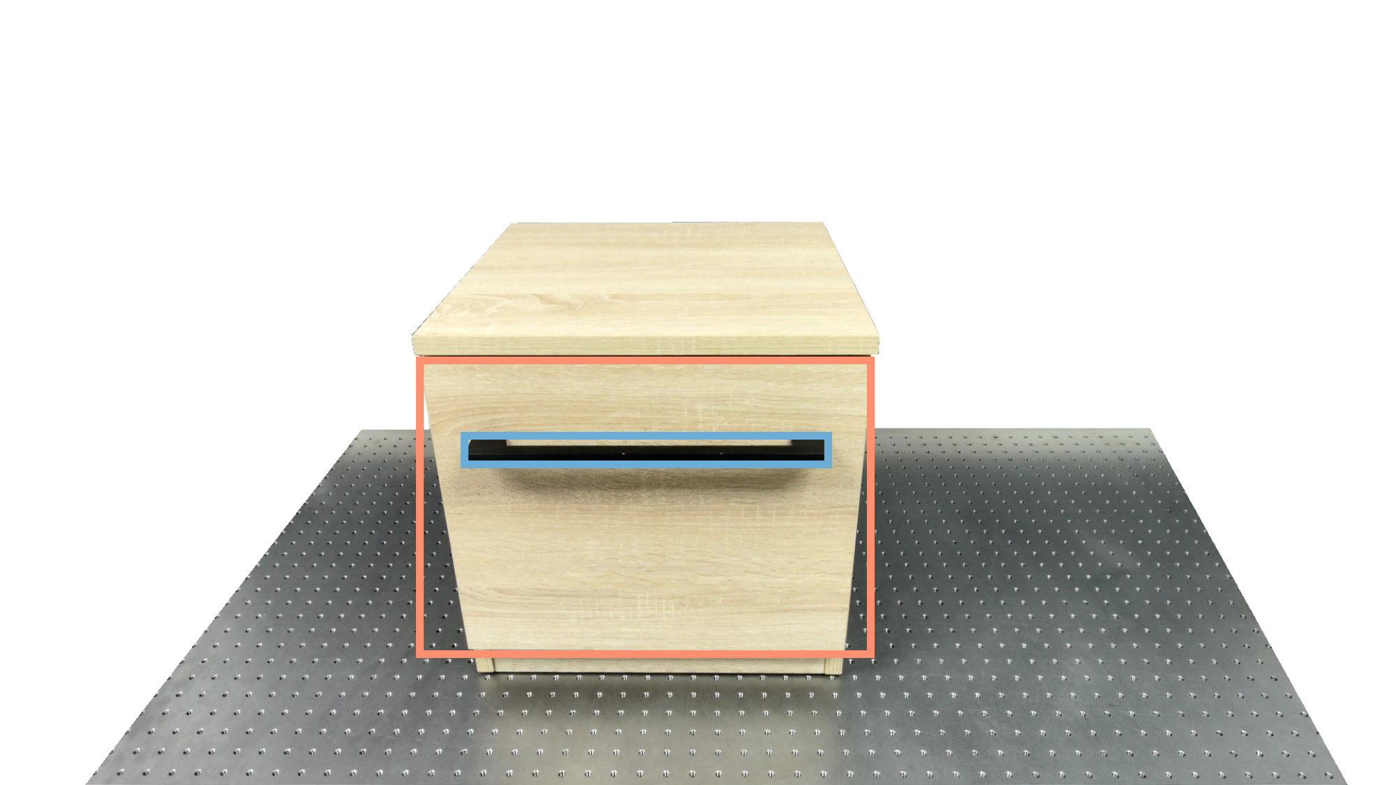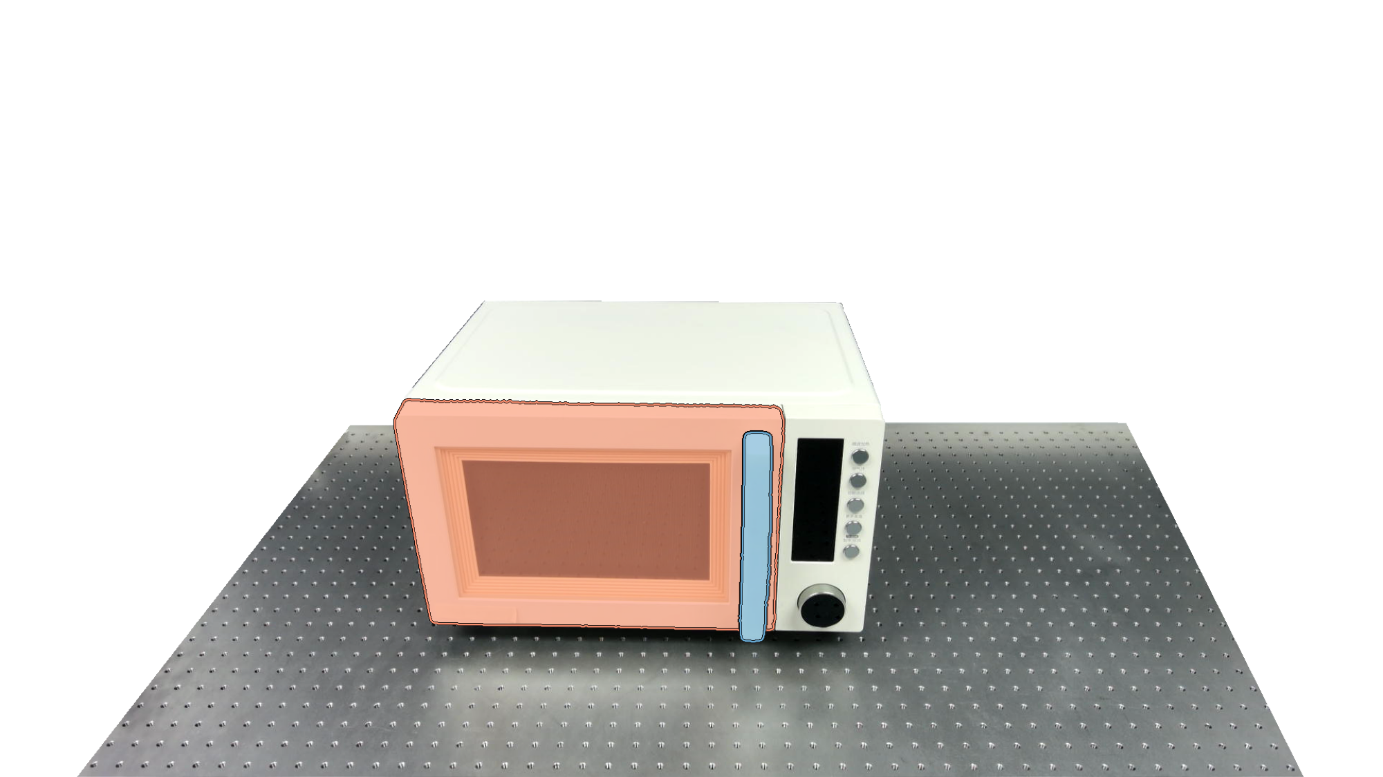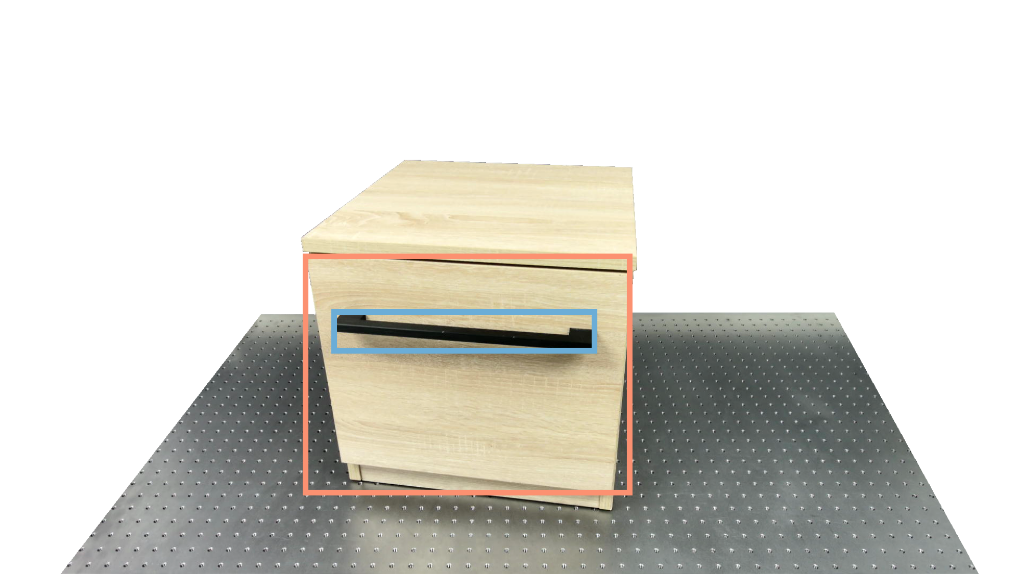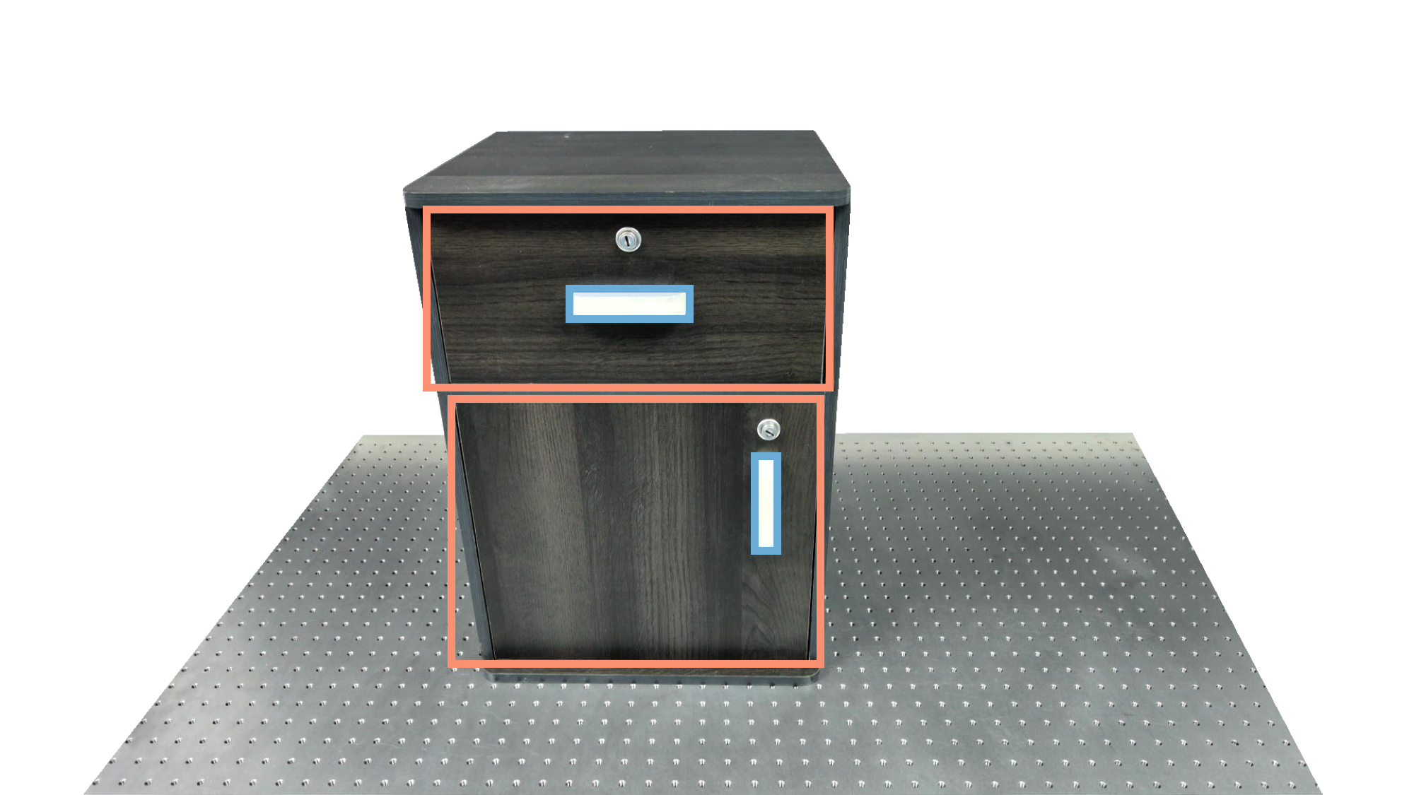 To identify holdable and movable regions, we first train a transformer-based detector that leverages DinoV3 visual features. The detector achieves a notably high mAP of 0.86 on the test set and generalizes seamlessly to real-world images. The model architecture and checkpoints are released with our code. The detection results are then used to prompt SAM2 for segmentation. In the following examples, blue indicates "holdable" parts, while orange indicates "movable" parts.